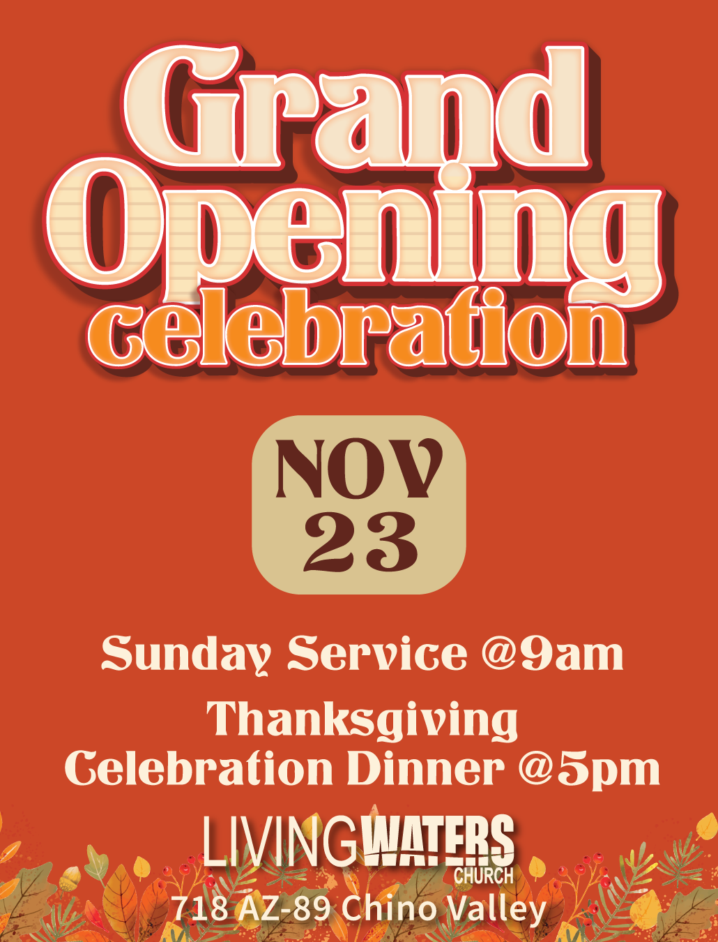 We are excited to announce the Grand Opening of our new Chino Valley campus! Two campuses, one church. Join us on Sunday, November 23rd at 9:00AM for our opening service.
